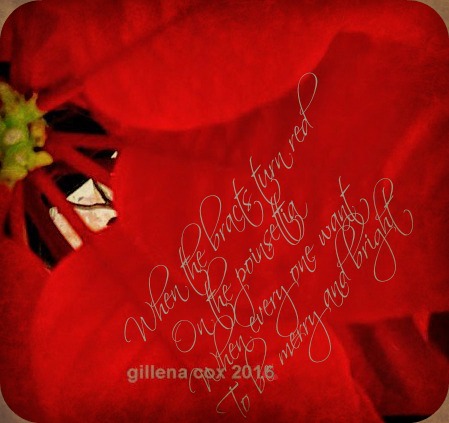 CHALLENGE: Think of a song--preferably a song of the season, a Christmas carol, Hanukah or Winter or truly any other song--and pick two consecutive words out of it. This can be any two words as long as they come one after the another. They do not have to be words particularly central to the song or the season and certainly your poem does not have to relate to the song or the season.