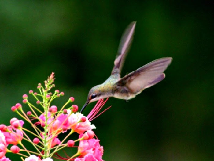hummingbird and Barbados pride flower from google dot com